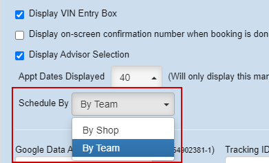 NOTE: If you are a Multi-Store and you are on the Team tab in eService and ans then switch to a Store that is using Schedule by Shop the Team Set up tab will disappear and you will be taken to Option Tan automatically.