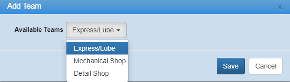 This will pop the Add Team Pop-up allowing you to add available Teams: