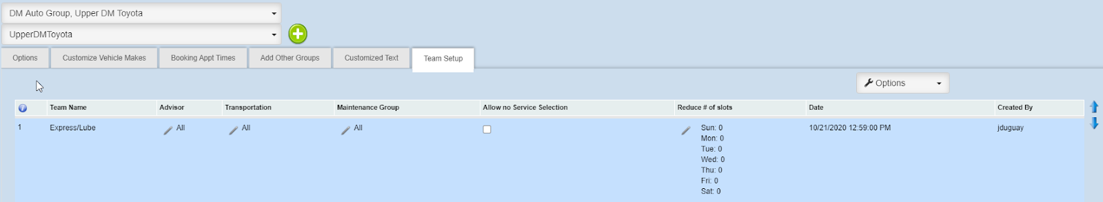 Maintenance selected determines the qualifying Team as an example if Express can only do LOF, Tire Rotation, and Wheel Alignment those should be the only 3 selected. If a customer picks any one or all 3 that team will be used if an extra service is added that Team will no longer be applicable.