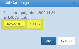 Now users have the ability to edit the scheduled date on a campaign by going to Fetch > Campaign History and click on the pencil beside the batch schedule you wish to edit. When the pencil is clicked a "Edit Campaign" popup will display where the user can edit the date and time to run the schedule and Save, the campaign schedule date must be in the future to edit.