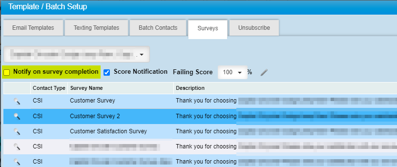 We have added a new option called “Notify on survey complete”. This option will allow users to receive an email notification every time a survey has been completed.The new option is located under templates and batch set up in the survey tab.
