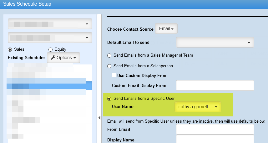Now if there is no Salesperson or they are inactive we will use the User Name that is selected in the “Send Emails from a Specific User” section in the Sales Schedule Setup screen.