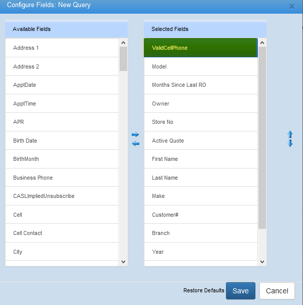 The ValidCellPhone field will also display in the Configure Fields popup, so users can add or remove the column from the grid.