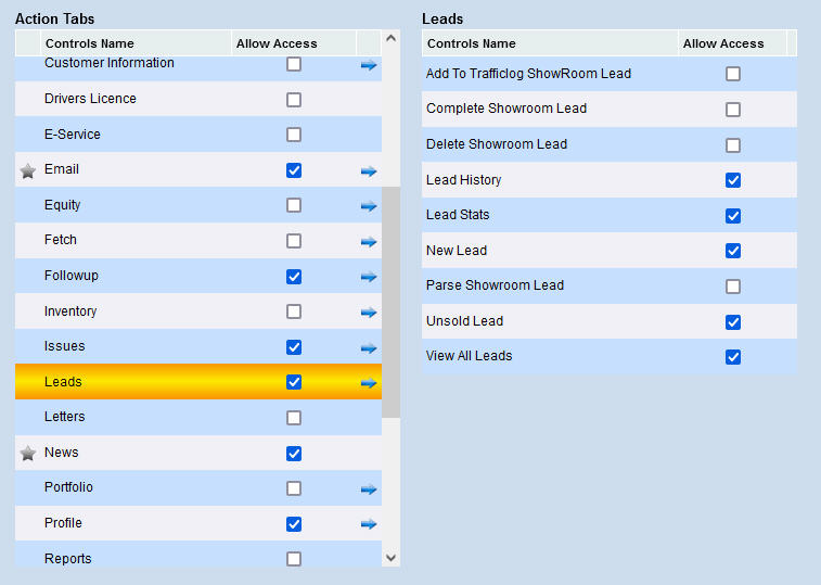 Additionally, we have added 4 additional options in User Access relating to Leads. These include, New Leads, Unsold Leads, Lead History and Lead Stats. If any or all of these are unchecked for a user, that user will not have access to view them in Dealermine. These will be checked by default for all users when they are created.Â