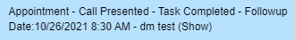 After completing a followup the traffic log will now display whether it was a show or no show. You will see this information in brackets at the end of the contact history.Â