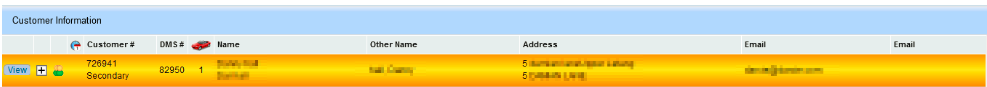 Dealerbuilt - As the Dealerbuilt DMS allows Spouse or Secondary information to be entered on a customer file, we have improved our ability in Dealermine to allow this as well. Now, when a search is completed in Dealermine, using a primary customer’s information (phone, email, address etc.), and the file has Spouse or Secondary customer information attached to it in Dealerbuilt, the search results will display as shown below, With the primary customer on top, and secondary customer on bottom.