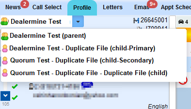 Additionally, the spouse/secondary information will display on the customer profile, much in the same way a merged file will display, within a drop-down.