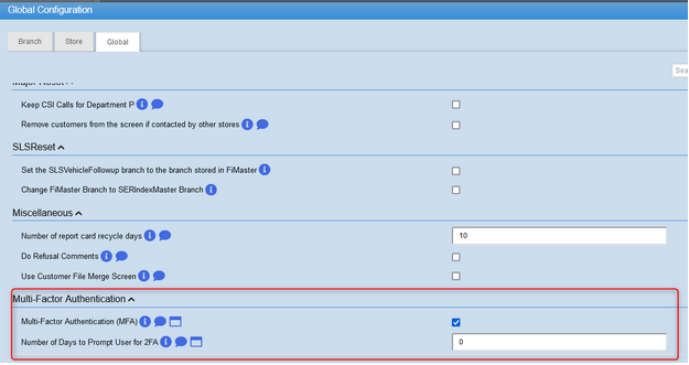 Dealerships are able to set the length of time between logins, before a user is required to input a code again. Note that 0 =5 Minutes, meaning a user would have to verify their account every time they log out or are logged out during the day. 1 = 24 hours, 2 = 48 hours and so on.