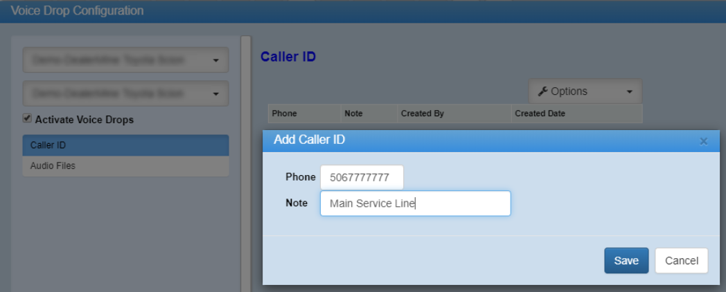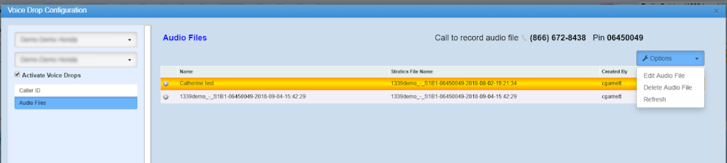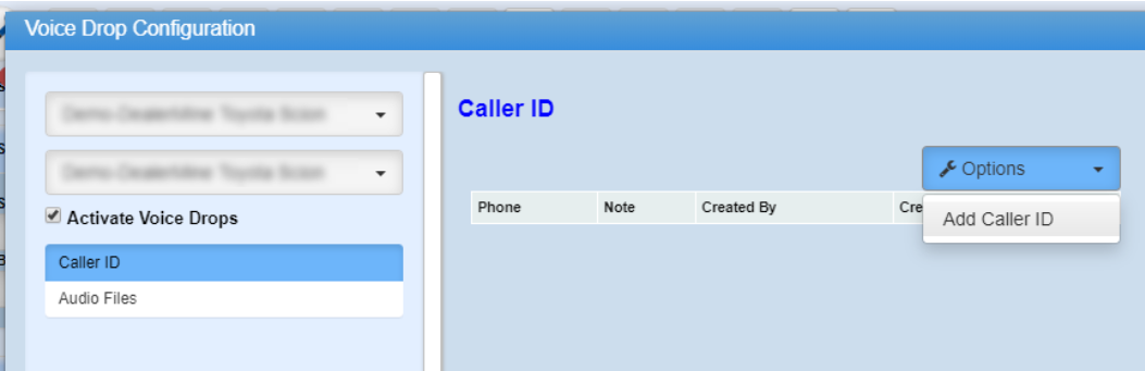 Once selected, two more drop downs will appear: Voice Files & Caller ID