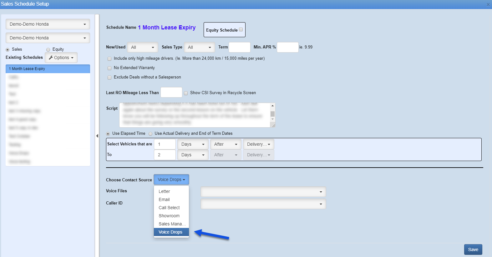 Scroll to the very bottom in "Choose Contact Source" drop down, select "Voice Drops"