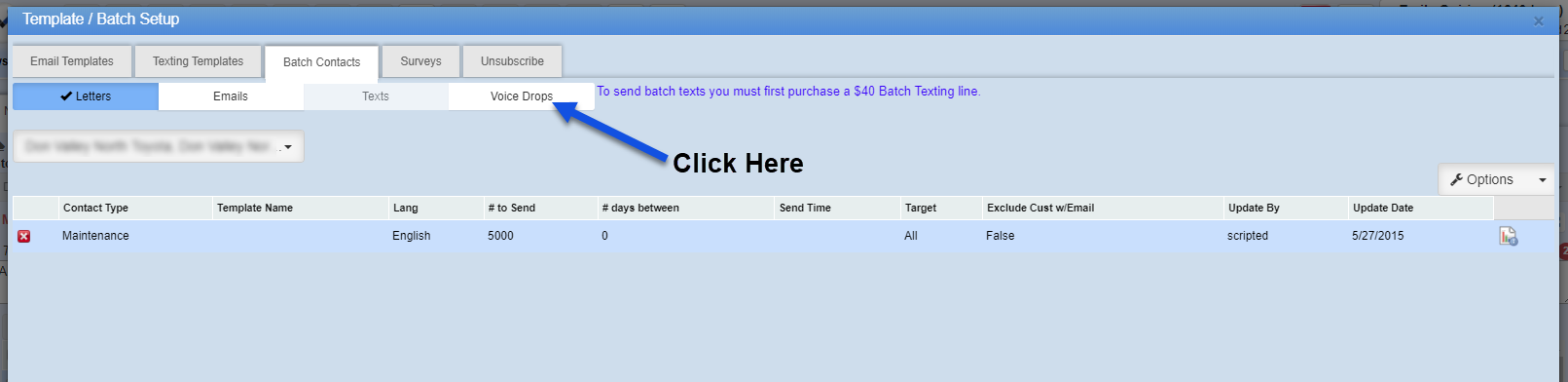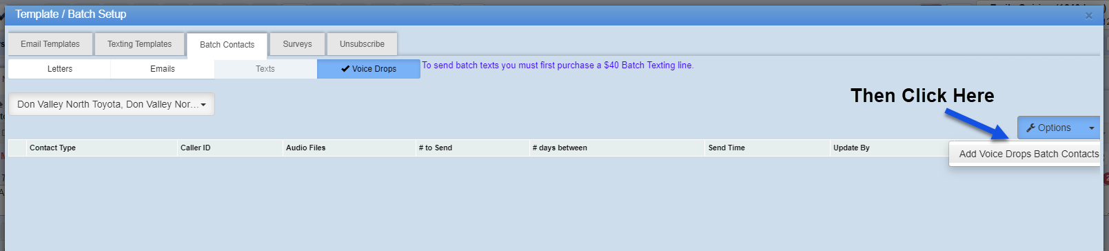 Then click 'Options' > 'Add Voice Drops Batch Contacts'.