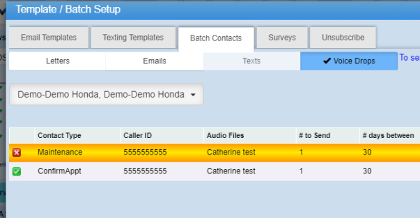 You will automatically be redirected to the "Batch Contacts" setup screen after clicking "Send to Batch". It defaults to 'Letters', click on 'Voice Drops'.