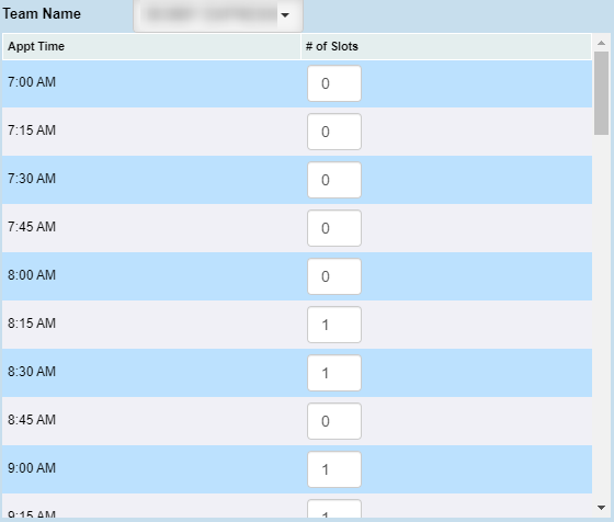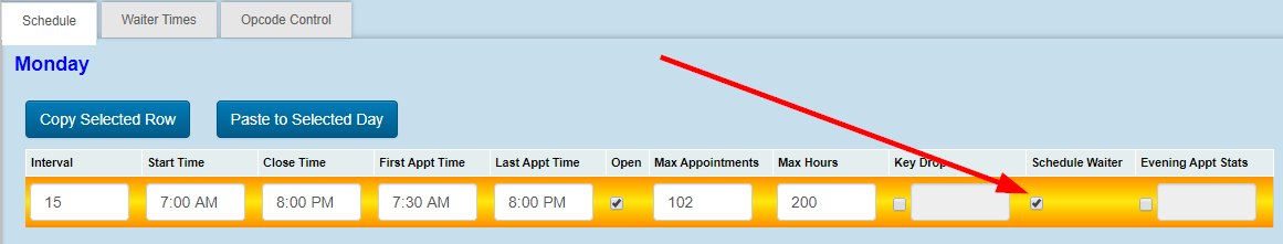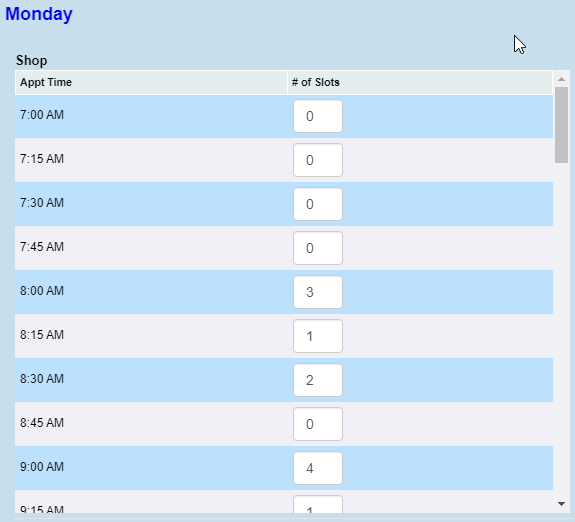 To configure waiter schedule enter a '# of Slots' beside each appointment time.Â