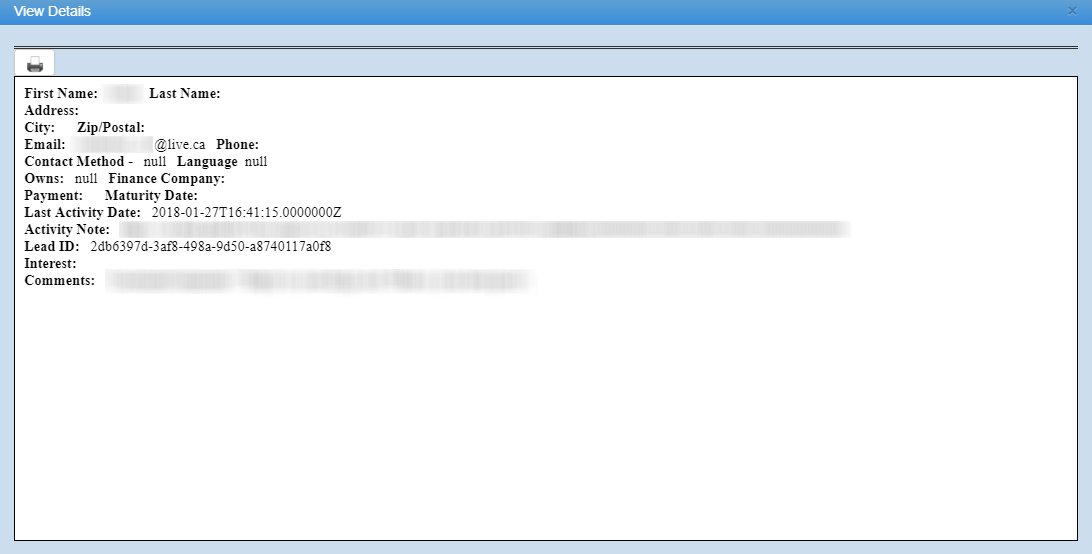 View Details- By selecting this you will be able to view a copy of the lead transcript