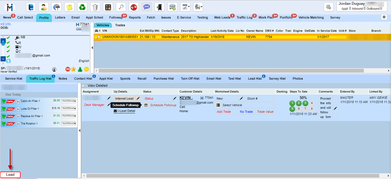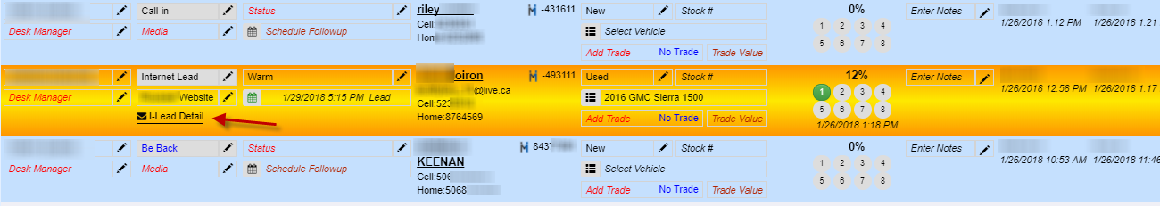 Bolded - new leads will remain bolded until a contact is made and recorded in DealerMine. (email, followup scheduled etc.)