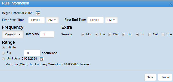 Range - How long the schedule will go on for